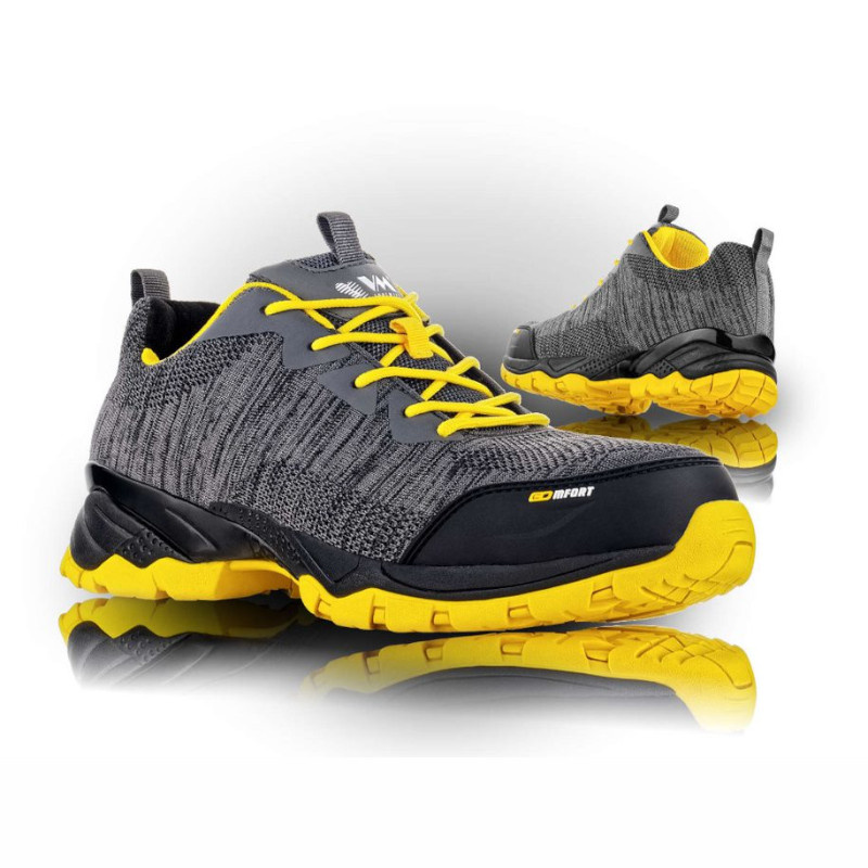 SVRŠEK: pletený, oděruvzdorný textil, PODŠÍVKA: laminovaná prodyšná textilie MESH, VKLÁDACÍ STÉLKA: HI-POLY – anatomicky tvarovaná z lehčené polyuretanové pěny potažená textilií MESH, antistatická, PODEŠEV: EVA/RUBBER – odolná proti palivovým olejům, antistatická, protiskluzná, lepená konstrukce. NORMA: ČSN EN ISO 20345:2012. PROVEDENÍ: S1P SRA – s plastovou tužinkou a kevlarovou planžetou