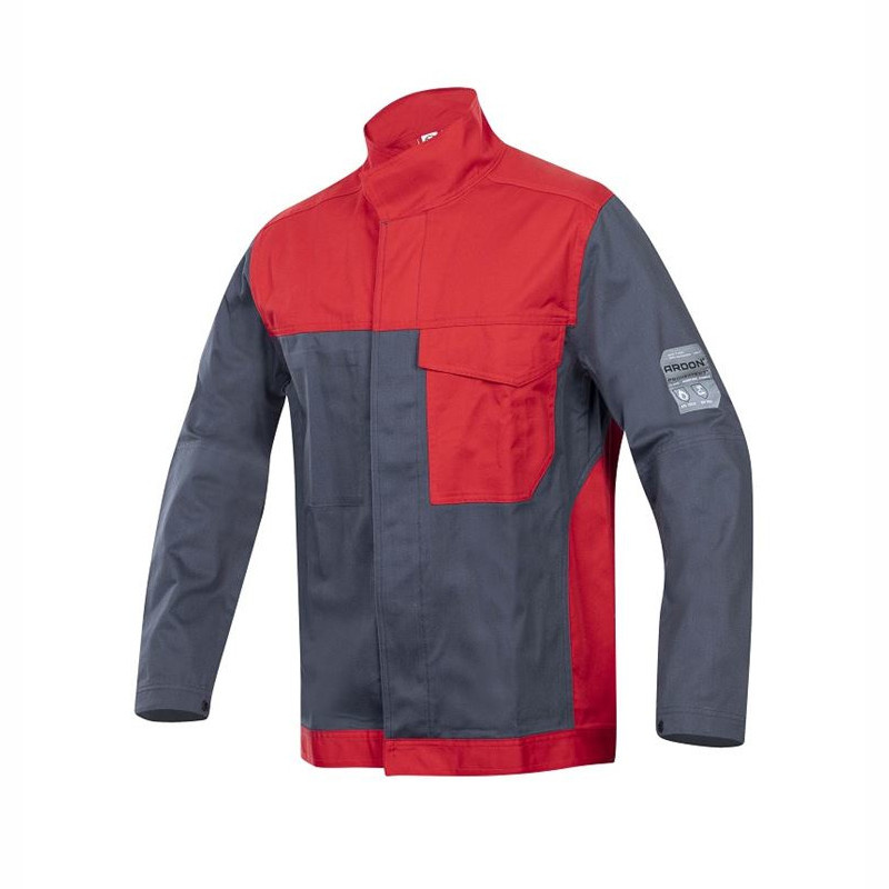 skvěle padnoucí originální střih v šedé a červené barvě, zvýšená ochrana předloktí blůzy, zapínaní na druky kryté légou se suchými zipy, vnitřní náprsní kapsa a náprsní kapsa na suchý zip, chrání uživatele při krátkodobém kontaktu s plameny, proti sálavému, kontaktnímu a konvekčnímu teplu a proti stříkancům roztaveného železa, při řezání úhlovou bruskou, resp. extrémním svařování musí být nositel vybaven doplňujícími ochrannými prostředky pro další části těla, praní při teplotě 75°C, celkový garantovaný počet údržby bez ztráty ochranných vlastností šíření plamene: 50x, materiál: 100 % bavlna, 260 g/m2, norma: EN ISO 13688:2013: Ochranné oděvy - obecné požadavky, EN ISO 11611:2018: Ochranné oděvy pro použití při svařování a příbuzných postupech – Třída 1, EN ISO 11612:2018 Ochranné oděvy – Oděvy na ochranu proti teplu a plameni