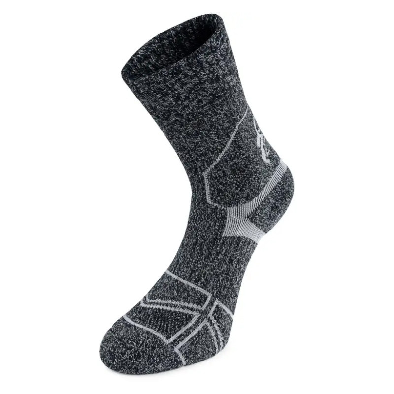 Ponožky CXS MerinoFlex spojují komfort, funkčnost a termoregulační schopnosti merino vlny. Jsou ideální pro pracovní, sportovním i volnočasové aktivity v chladném a vlhkém prostředí. Kvalitní ovčí merino vlna přirozeně reguluje teplotu, odvádí vlhkost od pokožky a zabraňuje vzniku zápachu, díky čemuž zajišťuje příjemný pocit i při celodenním nošení. Froté úplet na vnitřní straně ponožky poskytuje odpružení po celé délce chodidla a měkký došlap. Elastické zpracování se dokonale přizpůsobí noze a drží tvar bez sklouzávání. Volný lem nestahuje a nezpůsobuje otlaky, což zvyšuje celkový komfort při nošení. Materiálové složení: 28 % merino vlna 28 % akryl 23 % nylon 18 % polyester 3 % elastan